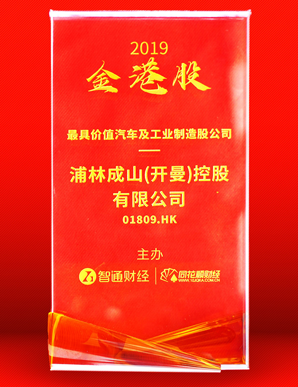 2019金港股最具價值汽車及工業(yè)制造股公司大獎